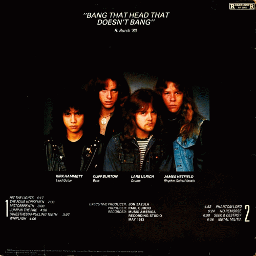 Metallica, which specialized in hard rock and heavy metal bands of the time. So this is where the band probably took their name from. This is the debut album from this extremely popular American thrash metal band, who were also one of the early pioneers for the genre. They planned to call this first album "