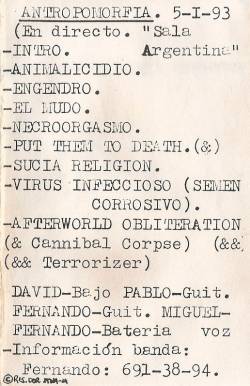 | Recorded live at the "Sala Argentina", Madrid, Spain, 05/01/1993. |