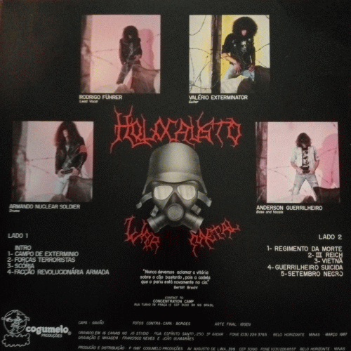 HOLOCAUSTO – Campo de Exterminio (Cogumelo ’87) : Encore un groupe brésilien et c’est nul comme beaucoup de formations de ce pays. C’est encore plus nul que Sepultura, ce qui parait inconcevable quand on connait la médiocrité de ce dernier. Du ‘cheese metal’ à son meilleur niveau… Une dernière chose à propos de ce groupe, il est nazi comme beaucoup de formations de son pays. C’est cool pour lui mais pas pour moi. Qu’il aille se faire foutre. Note : -/10. Ramses, Decibel of Death n°08, second semestre 1987.