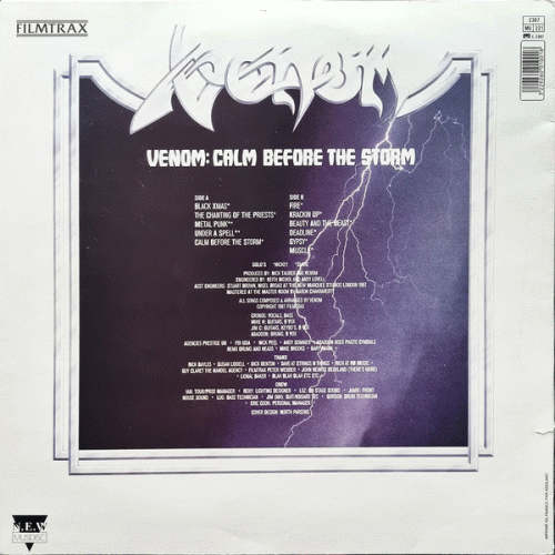 VENOM – Calm Before the Storm (NEW Musidisc '87) : Il est évident que Venom s’est assagi, au profit d’une musique trop calme et trop banale, à tendance Tokyo Blade et Accept. La puissance de la production de Calm before the Storm est par ailleurs inversement proportionnelle au niveau musical des interprètes. Nul. Stromtroopers of Thrashing Madness n°03.