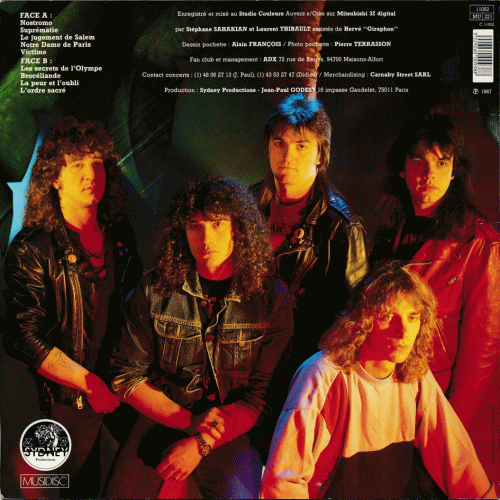 ADX – Suprématie (Sydney Productions ’87) : Nous avons, à maintes reprises, fait l'éloge de cet excellent groupe (français, en voilà un vilain mot), dont la crédibilité est indéniable et ne peut prêter à contestation sur notre territoire. Mais, maintenant, pour s’affranchir des limites afférentes au hard français (bouh !), il faudrait peut-être que ces messieurs daignent enfin opter pour le chant en anglais. Ce n’est pas pour que ce soit la panacée universelle, ni un but en soi ; après tout, ils nous emmerdent, ces anglais avec leur foutue langue ! Mais, d’un autre côté, cela me fend le cœur de savoir que cet excentrique anachronisme empêche ADX d’accéder au statut international. Avec trois albums de cette classe, avouez que ce ne serait que justice ! Je rêve certainement un peu, mais pourquoi les super-groupes sont-ils tous étrangers ? La triste fatalité qui s’acharne sur nos ressortissants n’a pourtant pas lieu d’être avec ADX, qui détient dans son jeu les quatre cartes maîtresses : mélodie, puissance, technique et originalité. Je vous concéderais volontiers qu’il existe une infinité d’autres groupes excellant dans l’un ou l’autre de ces domaines, mais force est de constater que la mise en exergue de l’un d’entre eux s’opère trop souvent au détriment des autres, et que bien peu synthétisent ces quatre qualités, éléments fondamentaux constitutifs du talent. De plus, non content de nous subjuguer, ADX sait aussi nous étonner ; car ses membres, qui ont gardé de leur plus tendre enfance une secrète passion pour les jeux de construction, n’ont jamais hésité à intégrer à leurs morceaux les breaks les plus ahurissants, le comble de l’audace ayant cette fois été atteint, au milieu de l’instrumental Les secrets de l’Olympe. Choquant ? Peut-être. En tout cas, c’est réussi ! Au chapitre des évolutions, il faut noter une nette progression des lignes de chant, beaucoup plus mélodiques. Comme, d’autre part, la production atteint un niveau très correct, vous en déduirez par vous-même que cet album est l’un des plus marquants du moment. Hervé "S.K." GUEGANO, Hard Force n°15, février 1988.