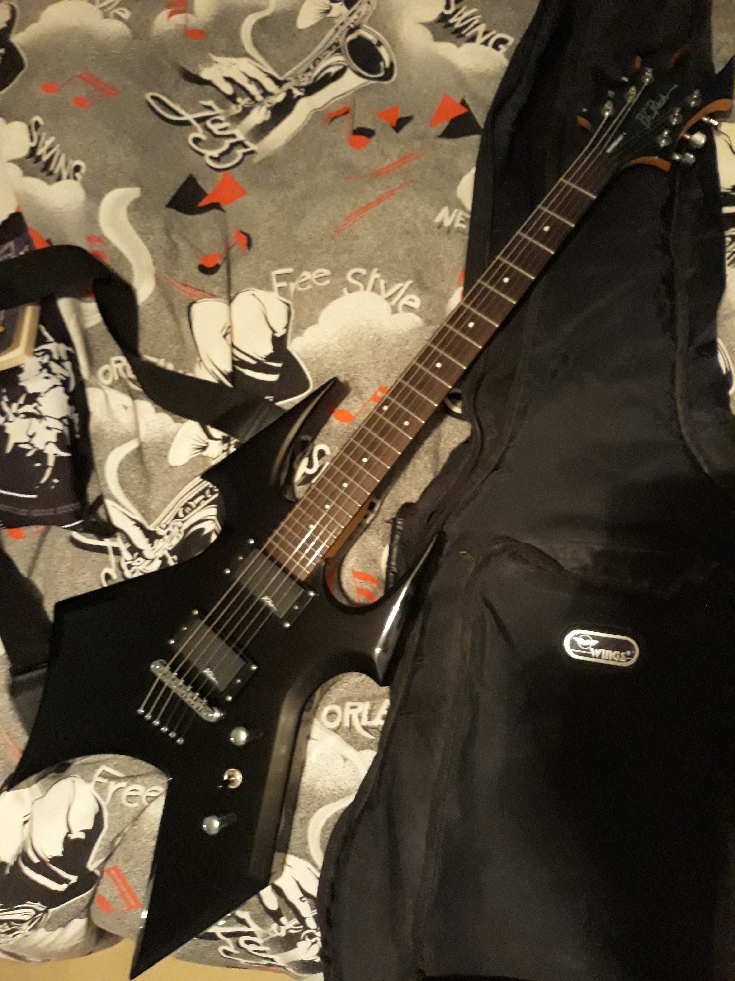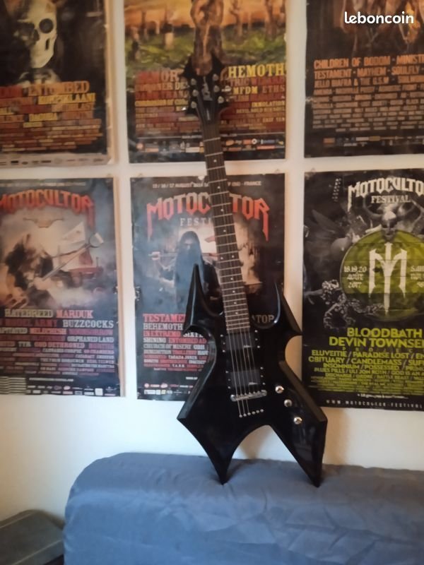 BC rich warlock black: Une entrée de gamme à 500e qui fait largement l'affaire, niveau son etc... Là aussi fau aimer les gros manches.