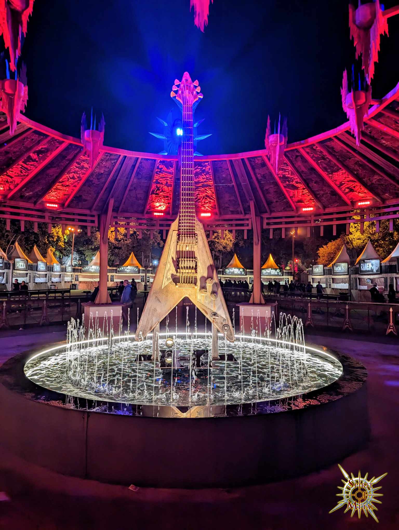 Hellfest : Une terre d’accueil Comme tous les ans depuis désormais un paquet d'années, le Hellfest est devenu une référence en termes d’accueil, d’activités et de bien-être pour le festivalier. Passons outre les critiques sur le confort au détriment d’un pass toujours plus cher (oui, c’est un fait), évitons de critiquer sans cesse la décoration, la grande roue, la nouvelle Gardienne des Ténèbres (impressionnante au demeurant) ou encore toute cette diversification qui donne simplement une identité au festival, qui ravi ceux qui traverse la moitié de la planète pour venir et qui, découvre, ébahi, ces immenses statues, sculptures ou autres environnements propres à chaque lieu. Bref, c’est beau, c’est dépaysant et c’est encore plus impressionnant de nuit avec le ballet de flammes qui jaillissent à tour de rôles. Dans le fond, peu de changement depuis l’année dernière, mis à part le remplacement du bûcher par la nouvelle maîtresse des lieux. La zone journaliste est également strictement identique (la fontaine de sang, la piscine, la salle où l’architecte est une colonne vertébrale géante) et les tentes sont toujours aussi suffocantes. Heureusement que la chaleur nous a plutôt épargné, n’évitant pas une annulation assez incompréhensible de Dave Mustaine qui semblait de toute façon à côté de ses pompes sur scène (je ne cherche même pas à savoir s’il était simplement malade ou autre chose). L’ensemble est toujours plus commode. La Valley extérieure, qui se dévoilait pour la première fois l’année dernière avec des dalles en caoutchouc devant la scène, est désormais terminée en dur pour la fosse comme toutes les autres scènes, évitant les nuages de poussière par temps sec et la boue par pluie. Idem concernant la warzone et, une fois de plus, force est d’admettre que le confort est vraiment au centre des préoccupations du festival qui, s’il accueille toujours plus de monde et une population toujours plus large (pour le dire gentiment), fait en sorte que chacun vive au mieux son moment. Une main heavy dans un gant pop, en somme.