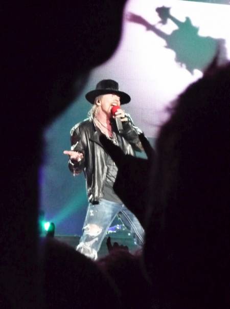 gg_jaime - 20 June 2012: @ZazPanzer: Bonne performance professionnelle. Je ne peux comparer avec une précédente car c'est la première fois que je les vois ! M'enfin avec 3 guitaristes et 2 aux claviers, en plus du bassiste, batteur et chanteur : ça fait du monde. Presque 3h d'affilées quand même. Le son était très bon sauf pour la voix (peu audible, de là où j'étais). Enfin côté Show, ça a envoyé : des explosions, des flammes, des mini feux d'artifices et des confettis ! Du côté d'Axl : pas d'interaction avec le public ; même pas : "You're the best fucking audience of the world", as usual !
