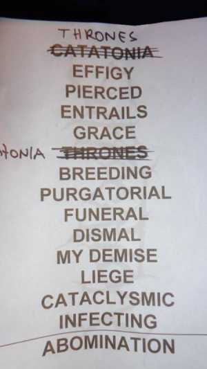 Chab - 31 July 2014: Super les photos ! Bon le tout premier groupe ne m'a pas convaincu... Bien dégouté qu'Havok et Skeletonwitch aient échangé leurs horaires de passage par contre ! Havok c'était génial, même si je voulais entendre "Under the Gun". Skeletonwitch, vraiment pas mal, des riffs en béton et une bonne présence. Suffocation au top (bien content d'avoir eu le vrai chanteur pour mon premier concert de Suffo), le groupe est carré et super souriant ! A refaire !