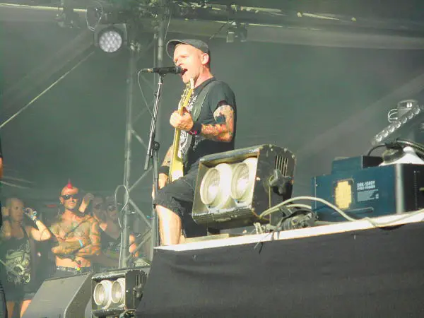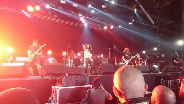 18h35 : Malgré que je sois un deathters invétéré, je fais l’impasse sur Firespawn pour aller me placer, une fois n’est pas coutume, devant légèrement à droite pour le set de Tagada Jones que je t’attendais fermement (avec celui de Nails, mais pour d’autres raisons). Et ce, pour trois raisons que je vais vous exposer pour une bonne remise en contexte. D’abord, je suis le groupe depuis l’album « Manipulé », le punk, aux fortes entournures métal du groupe me plait beaucoup, c’est direct, franc, engagé et honnête. Puis, j’avais assisté de très loin à leur concert en 2014. La troisième raison qui me tenait le plus à cœur, est de rendre hommage à ma cousine, Sterenna, décédé un mois et demi avant le Hellfest, auquel elle devait participer cette année et, qui était une fervente fan du groupe. Elle était d’ailleurs vêtue de la veste de Tagada Jones lors de son accident de la route, suite à une visite du site. Etant complètement rebuter par cette injustice (le mot est faible), j’ai donc contacté Niko Jones pour savoir s’il était possible de lui dédier la chanson « La Peste Et Le Choléra », proposition acceptée par le groupe. Voilà pour les explications.