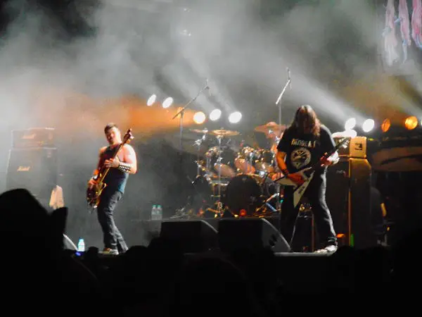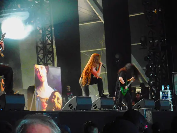 21h50 : Un petit burger au Hellsnack pour se remettre de nos émotions et je fais face à l’un des dilemmes du week-end. Etant un inconditionnel d’Obituary, je n’imagine pas assister à leur concert ailleurs que devant à gauche, la décision est donc prise de zapper Belphegor. Mes deux acolytes (alcooliques ?), ayant déjà vu les américains à maintes reprises, décidèrent d’aller sous La Valley pour assister à Electric Wizard, ou plutôt admirer la guitariste. Obituary débute son set par une triplette d’anthologie qui fait mouche (verte, évidemment) d’entrée, avec « Internal Bleeding », « Chopped In Half » et « Turned Inside Out ». Autant dire, que la Altar, blindée, est déjà à l’envers. L’intensité ne faiblira jamais et les floridiens enchaînent les morceaux de choix, avec une impression de rapidité supplémentaire, en comparaison à leur show mémorable de 2015. John Tardy s’égosille de son timbre si particulier et sa communication avec le public reste minimaliste. La mise en son est très massive, malgré un début assez brouillon (défaut corrigé dès « Chopped In Half »). Tout comme lors de l’édition de 2015, Obituary fait à nouveau trembler la terre clissonnaise, pour un concert mémorable.