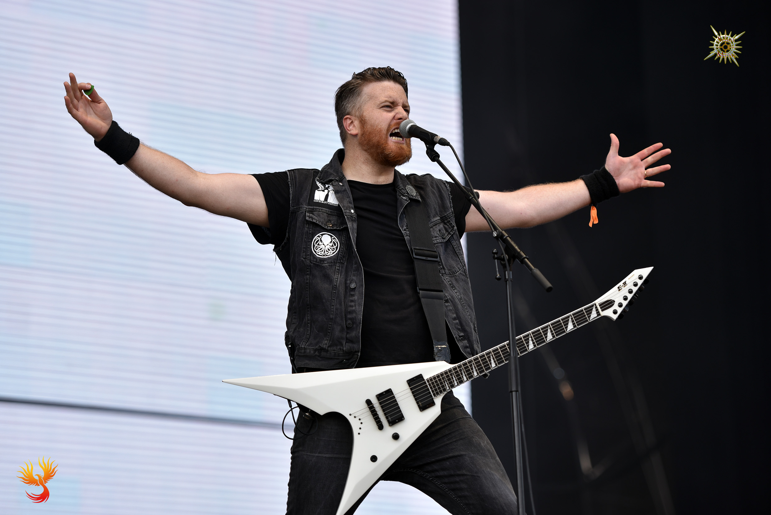 Ne connaissant pas ce groupe du sud, j’ai regardé quelques bouts (j’ai un peu papillonné en début de journée je dois avouer) de ce heavy / thrash matiné d’éléments plus modernes. Les gars sont d’abord masqué (imitation peau) avant d’enlever pour dévoiler leur visage. La musique est efficace, le son plutôt bon et le groupe fait un bon office “d’opener” pour ce qui arrivera ensuite. Sympathique, à défaut d’être renversant dans une affiche aussi pléthorique.