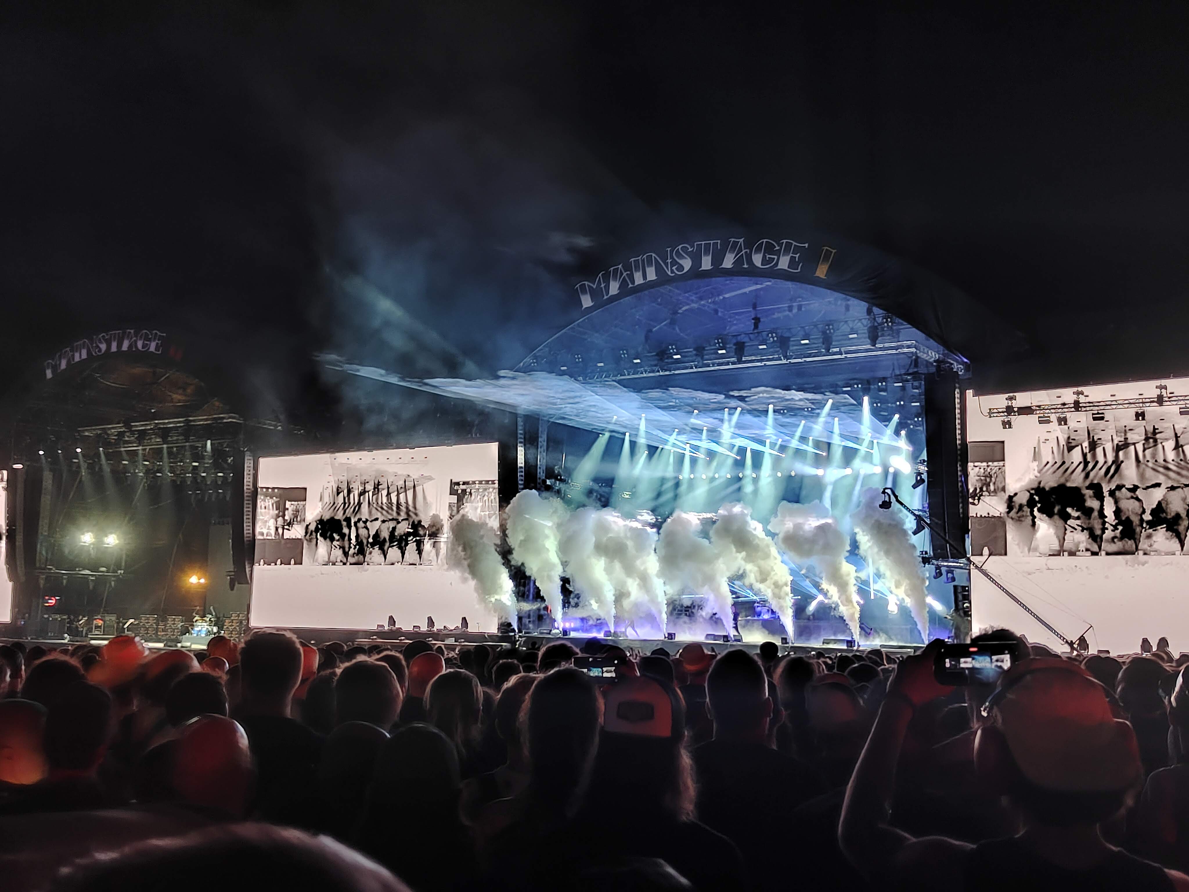 D’un point de vue imagerie pure, les français ont livrer le spectacle du week-end, sans aucnue hésitation sur Mainstage. Des décors magnifiques, une utilisation des écrans géants allant bien plus loin que la simple reproduction d’eux en train de jouer (il faut voir les éclairs épileptiques sur The Cell, les films de Another World ou The Gift of Guilt ou encore les immenses “Fight !” sur Hold On). Le côté visuel qui ressort des écrans géants, des tableaux derrière, de cette pyrotechnie millimétrée sur Amazonia ou L’Enfant Sauvage ou encore de l’effet de vague sur Flying Whales avaient de quoi émerveiller, et presque de préférer le show un peu en retrait pour profiter d’une vue d’ensemble sur ce show à l’américaine.