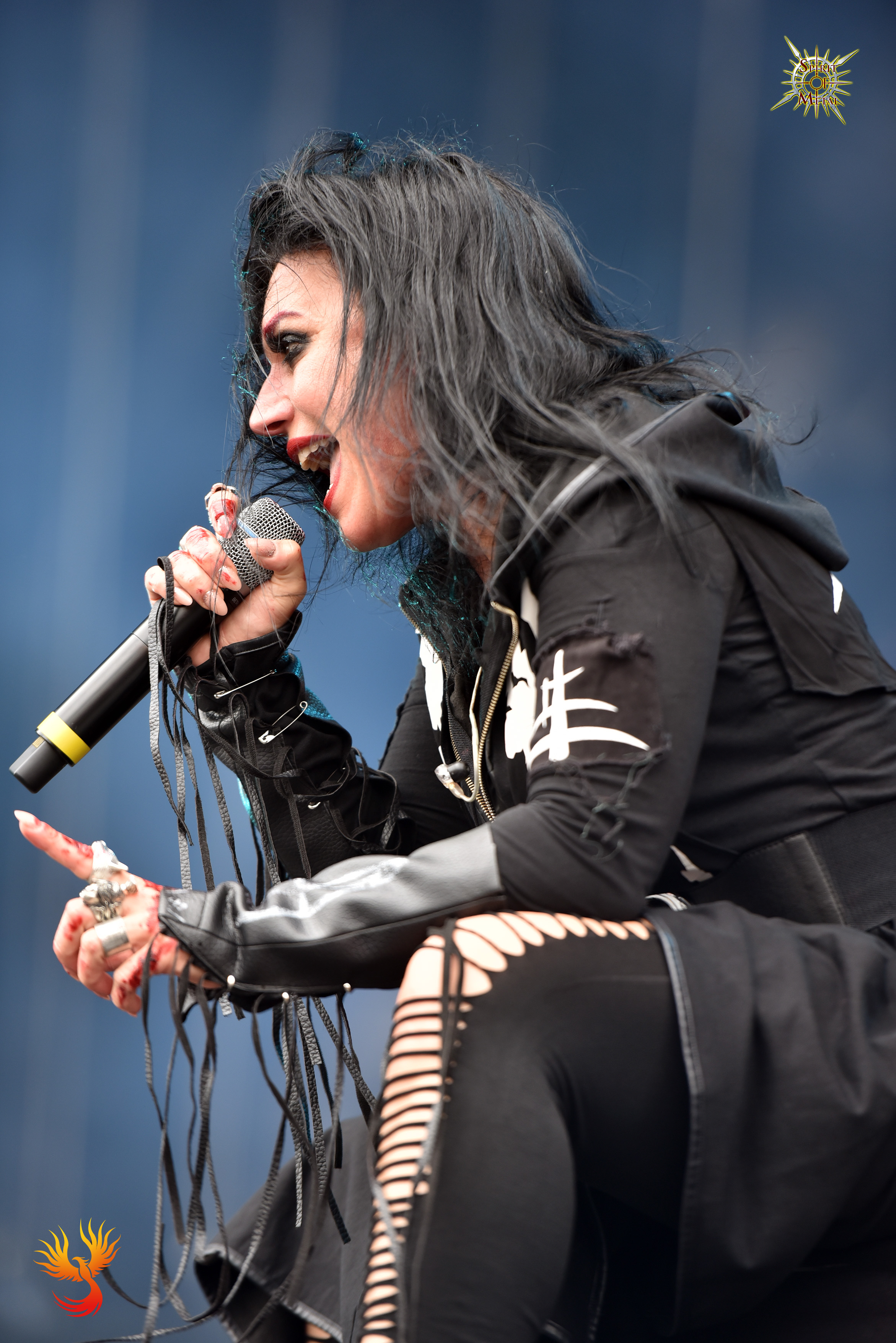 (Eternalis) : Black Anima avait déjà annoncé le retour de Lacuna Coil comme un groupe plus féroce et velu que jamais et l’imagerie du groupe va également en ce sens. Fini les tenues décontractées ou les camisoles de Delirium : corpse paints de sortie pour les musiciens, un Andrea Ferro démoniaque et une Cristina Scabbia animale et magnétique arrive sur scène avec le furieux Blood, Tears, Dust ! Cristina est très en voix, le son est ultra percutant et Andrea, comme souvent, est beaucoup plus performant lorsqu’il se mute en growler plutôt qu’en chanteur. Malgré la noirceur des costumes, le frontman et la frontwoman arborent un sourire communicatif et s’en donnent à coeur joie pour faire bouger la foule déjà compacte massée devant eux. Trip the Darkness fait remuer encore un peu plus l’audience avant que le groupe ne démarre de nouveaux titres, majoritairement plus sombres et agressifs, comme Reckless ou Apocalypse. Heaven’s A Lie de Comalies fera chanter les festivaliers tandis que Our Truth déchainera quelques pogos pour ce classique de Karmacode. Pas de Enjoy the Silence cette fois mais un vrai plaisir d’avoir suivi les italiens pendant 40 minutes, visiblement plein de vitalité et jeunes comme au premier jour ! On remarque néanmoins une vraie différence entre les morceaux récents plus extrêmes et syncopés et les anciens où la touche gothique (particulièrement dans le chant clair d’Andrea) était très fortement présente. Rien de désagréable mais le décalage est parfois réel d’un titre à l’autre. A revoir probablement dans de plus longues conditions, un bon moment.