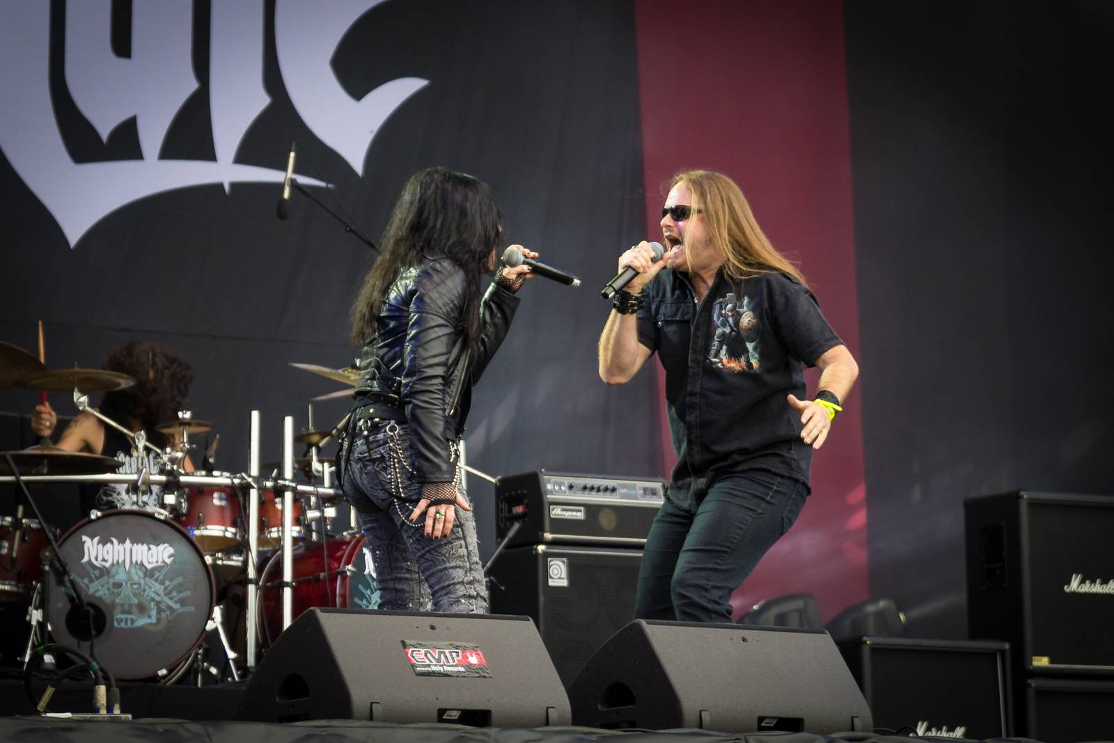 (Kelly Sundown en guest de Nightmare, au Hellfest 2016)