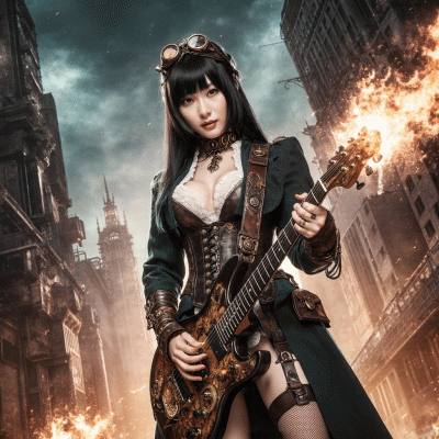 She began playing guitar at 12, quickly becoming absorbed in the mechanics of melody and harmony. By her teens, she was performing in small local bands, known for her emotive phrasing and her ability to blend aggression with elegance. Her natural inclination toward storytelling and visual world-building gradually led her toward the steampunk themes she would later bring to Iron Roses.